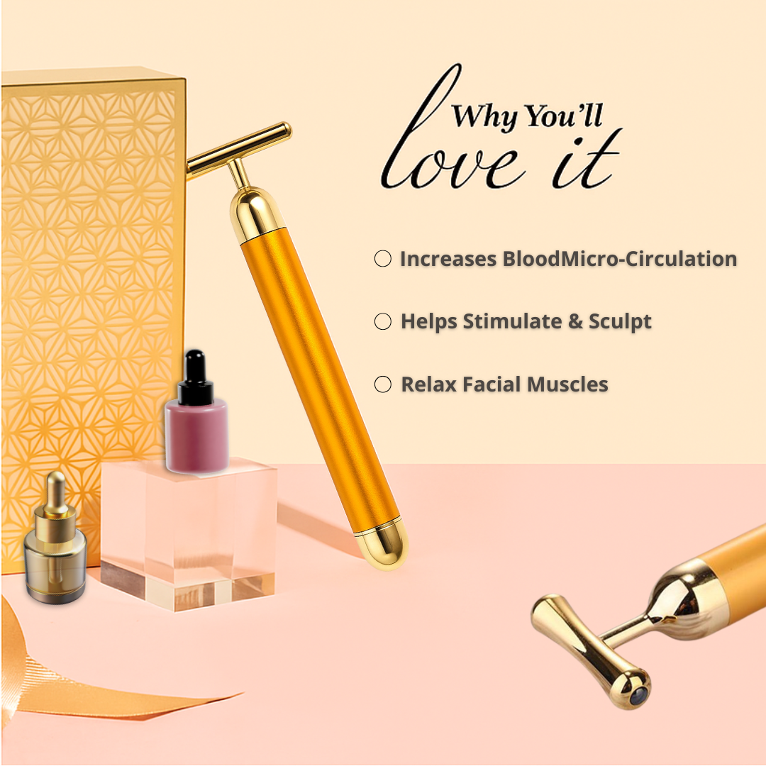 Auvra Facial Massage Roller brings spa-like radiance straight to your home. Crafted with precision and powered by gentle micro-vibrations, it helps tone facial muscles, enhance blood circulation, and give your skin that natural sculpted glow.Glide it daily for firmer, refreshed, and youthful-looking skin — because your beauty deserves a golden touch.
